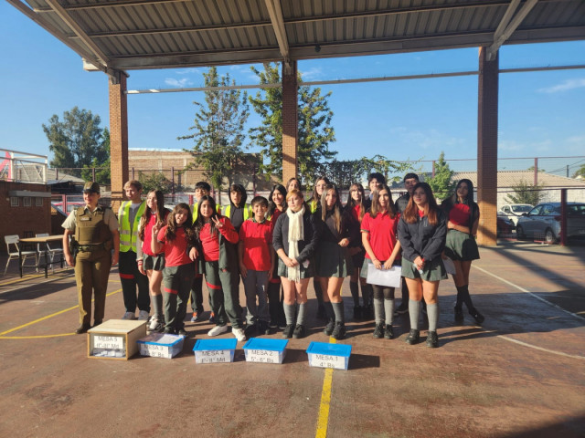 Durante la jornada, el proceso contó con la colaboración de 20 estudiantes voluntarios, quienes cumplieron funciones como vocales de mesa, asesores y miembros del Tricel, participando también en el conteo de votos realizado en la biblioteca. Asimismo, se contó con la visita de Carabineros de Chile, cuya presencia otorgó mayor realce a la actividad y reforzó el objetivo de fortalecer la participación democrática estudiantil dentro del Plan de Formación Ciudadana del establecimiento.