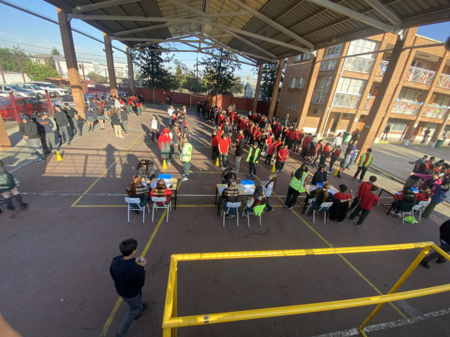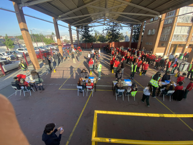 La actividad, organizada por el área de Convivencia Escolar, se desarrolló entre las 8:10 y las 9:15 horas, durante el primer bloque de clases, permitiendo que los cursos asistieran de manera ordenada al proceso de votación. En esta instancia participaron estudiantes desde 5° básico hasta IV medio, alcanzando una sobresaliente asistencia del 91,7% del padrón electoral, con 642 votos emitidos de un total de 700 estudiantes habilitados.