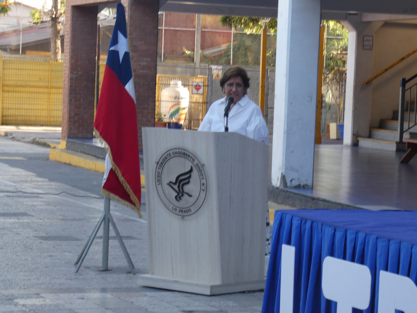 Este lunes 2 de septiembre, a las 9:45 horas, el Colegio Teniente Dagoberto Godoy Lo Prado dio la bienvenida al Mes de la Patria con un esquinazo protagonizado por toda la comunidad escolar. El acto comenzó con el canto de tonadas típicas de Chile y la canción nacional, interpretadas por las profesoras Paulina Torres, Magdalena Faúndez, Eduardo Ponce, Claudia Torres y Alejandro Contreras, quienes conforman el grupo “Los 3x7 Dagoberto”.