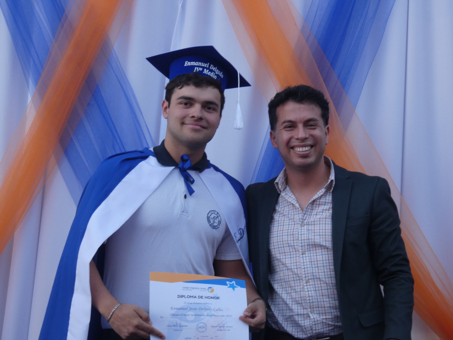 Entrega el premio al Mejor Rendimiento Académico año 2025, el Coordinador Pedagógica de Enseñanza Media, el Señor Marco González.