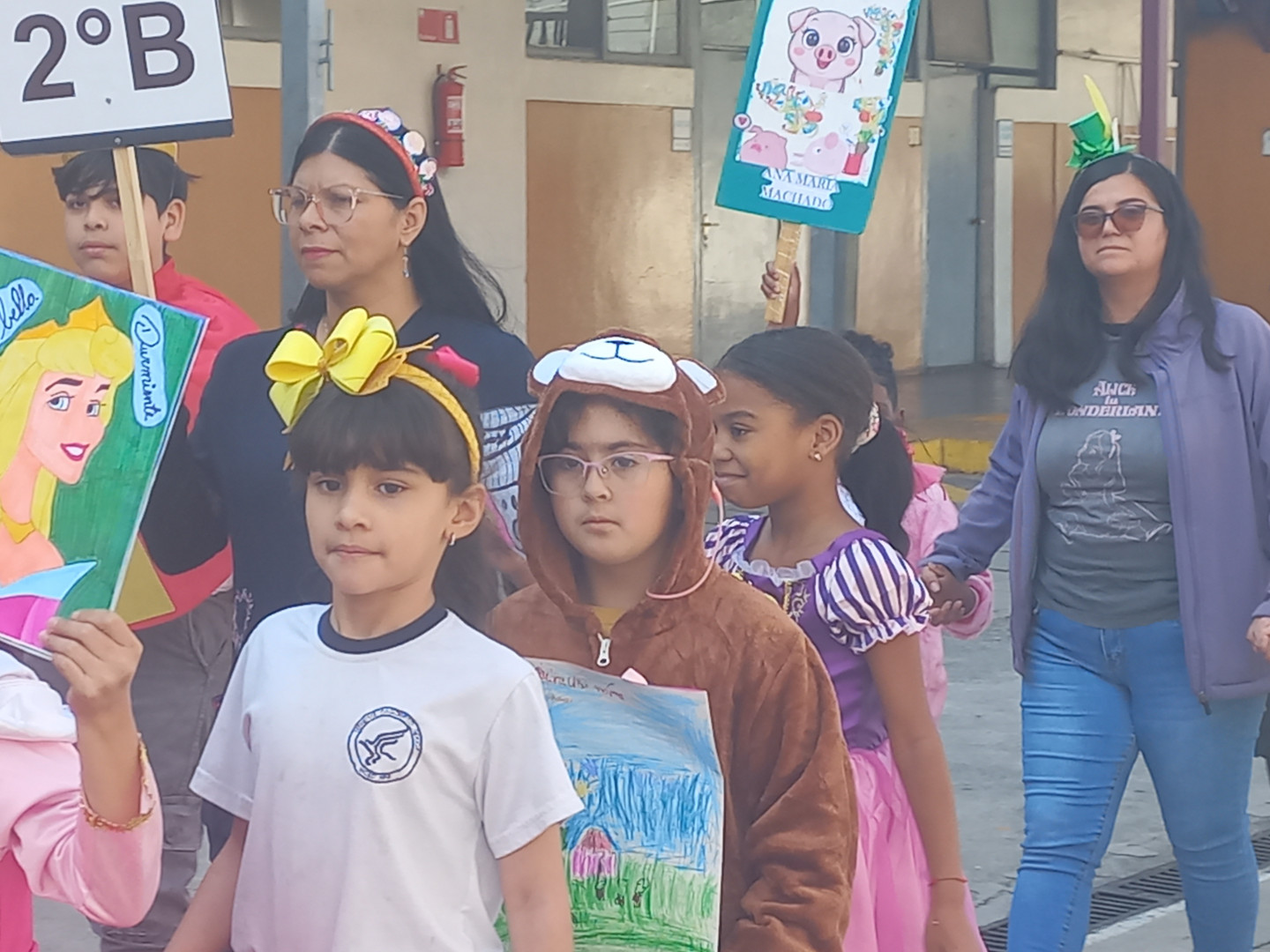 La jornada del 22 de abril comenzó con la difusión de una cápsula informativa virtual preparada por estudiantes de cuarto medio, dirigida a toda la comunidad escolar. Posteriormente, se realizó un desfile literario alrededor del colegio, en el que participaron estudiantes de primero y segundo básico, acompañados por alumnos de cuarto medio del