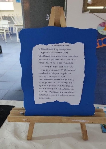 La Muestra Semestral de Artes Visuales, realizada los días 22 y 24 de julio en el pasillo de salida del casino del establecimiento, reunió los principales proyectos desarrollados durante el primer semestre por estudiantes de 1° básico, 6° básico, 7° básico, 8° básico, I° medio y el electivo de III° medio.