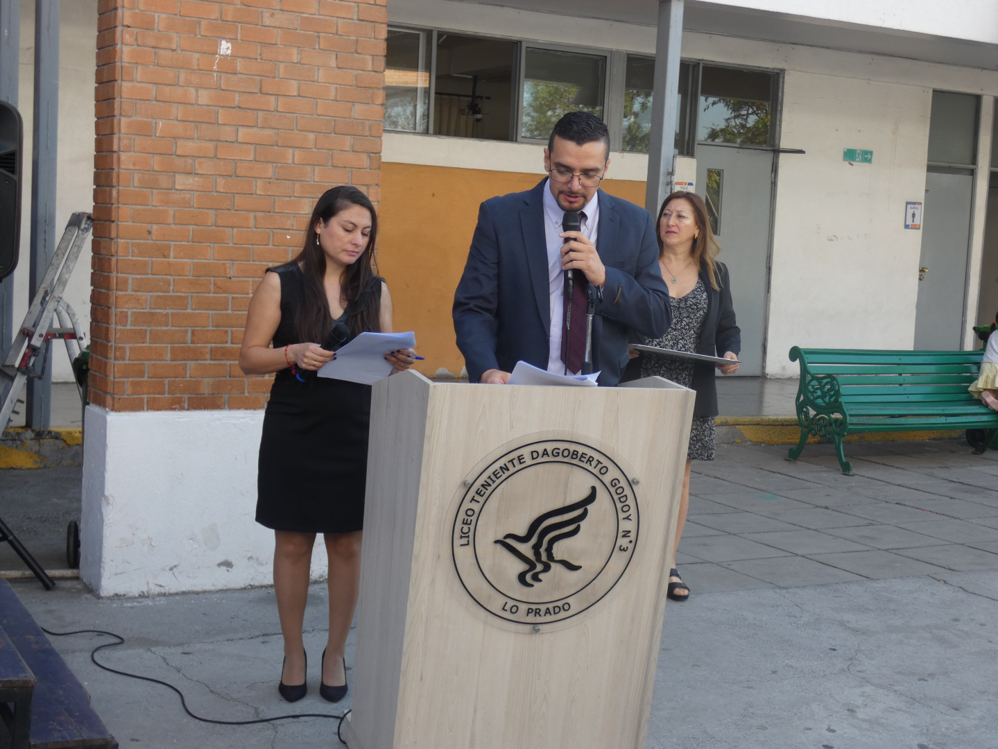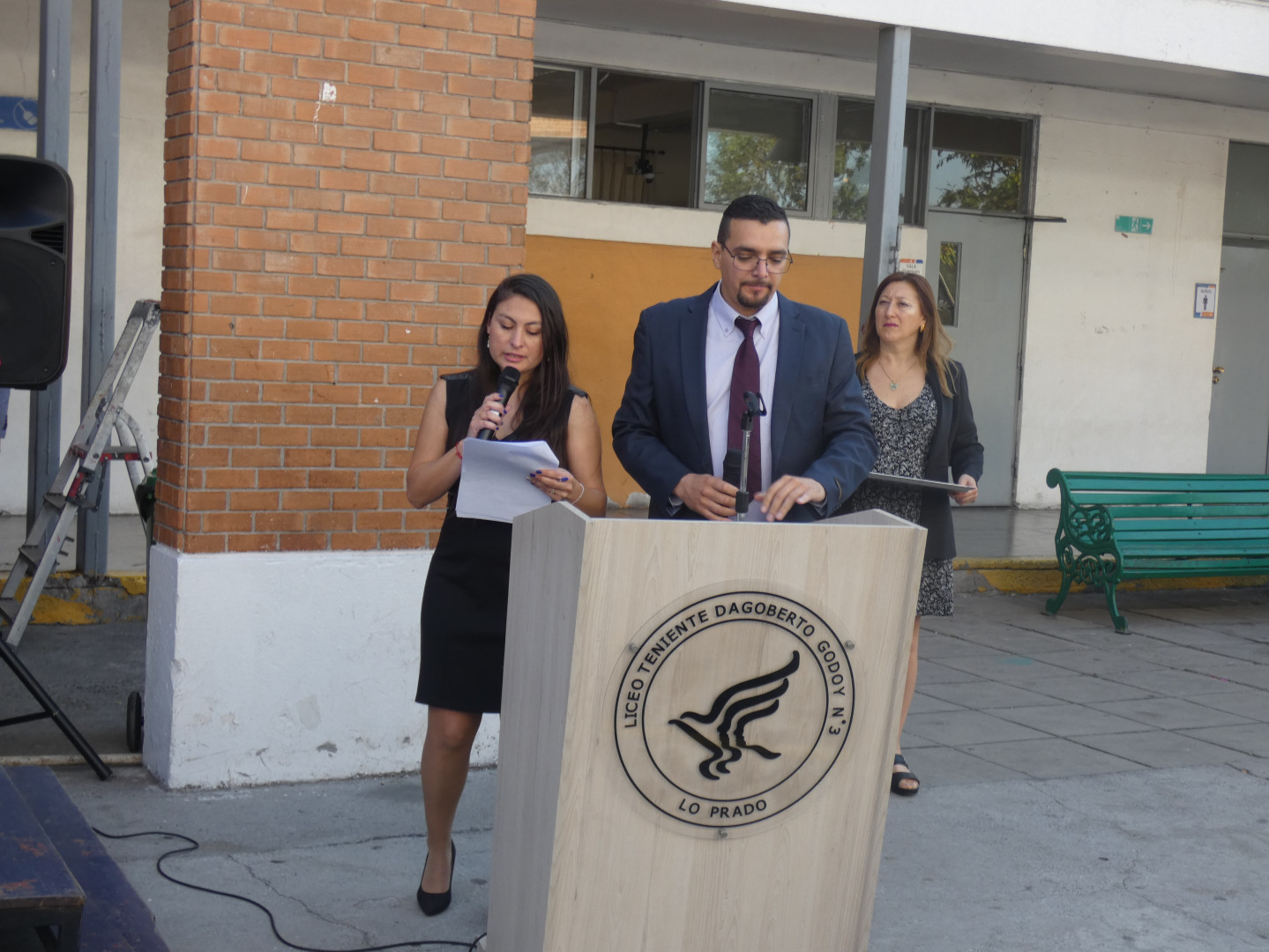 Este lunes 2 de septiembre, a las 9:45 horas, el Colegio Teniente Dagoberto Godoy Lo Prado dio la bienvenida al Mes de la Patria con un esquinazo protagonizado por toda la comunidad escolar. El acto comenzó con el canto de tonadas típicas de Chile y la canción nacional, interpretadas por las profesoras Paulina Torres, Magdalena Faúndez, Eduardo Ponce, Claudia Torres y Alejandro Contreras, quienes conforman el grupo “Los 3x7 Dagoberto”.