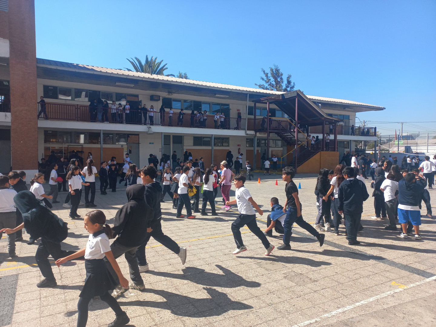 Desde las 9:30 horas, el patio central se transformó en un espacio lleno de energía y diversión para los cursos desde 4.º básico hasta IV medio, quienes participaron en entretenidas actividades como vóleibol gigante, quemadas y tiro al blanco. Paralelamente, en el patio aéreo, otros estudiantes disfrutaron de juegos que promovieron la concentración y el pensamiento lógico, tales como ajedrez y tenis de mesa.