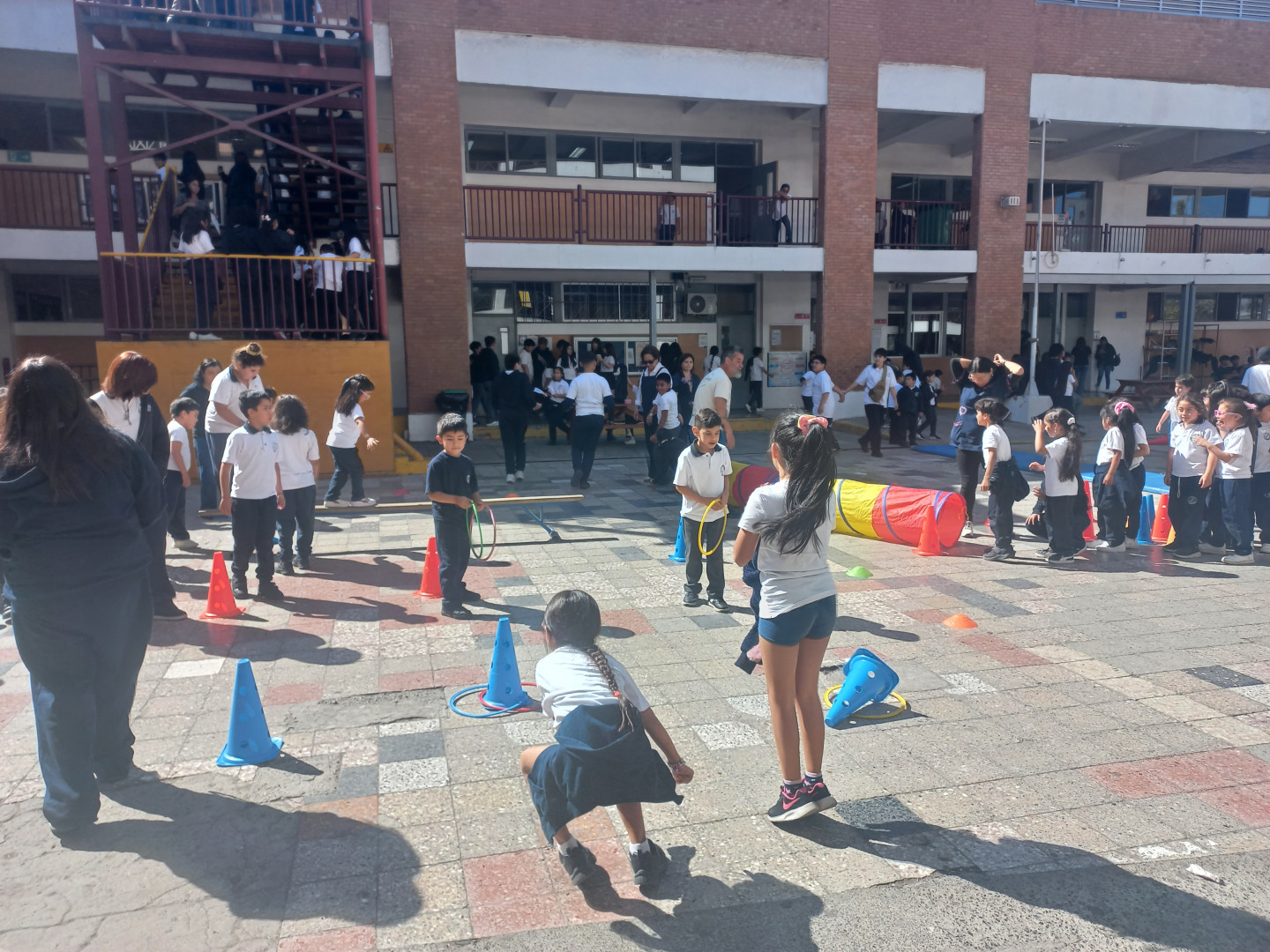 Posteriormente, a las 11:15 horas, fue el turno de los estudiantes de 1.º a 3.º básico, quienes participaron en un circuito de cuatro estaciones, además de juegos recreativos como quita petos y fútbol tenis, destacando en todo momento la participación activa, la colaboración y el compañerismo.