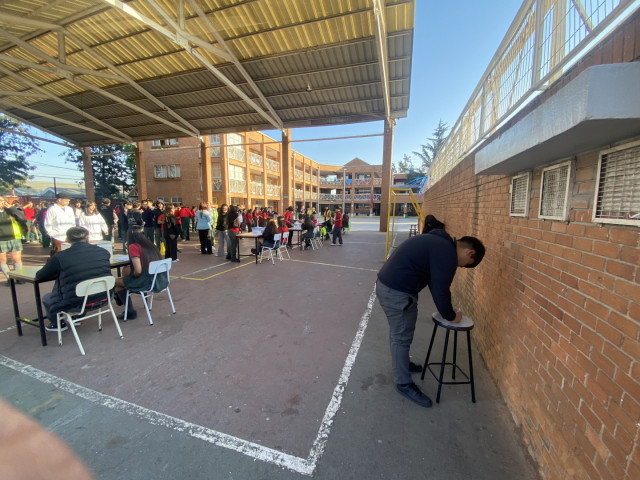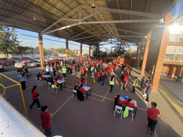 La votación se realizó en la cancha techada del establecimiento, donde se habilitaron cuatro mesas distribuidas por niveles, facilitando así un proceso ágil y organizado. Además, como parte de la formación cívica, los cursos de 4° básico A y B fueron invitados a participar en una experiencia experimental, promoviendo desde temprana edad valores como la participación democrática y el sentido de pertenencia.
