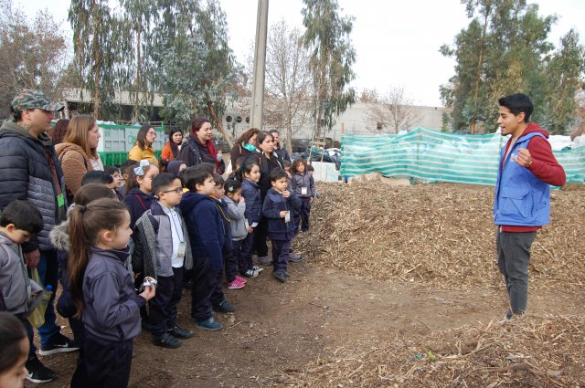 En compañía de sus educadoras y apoderadas, las y los estudiantes de Kínder del Colegio Teniente Dagoberto Godoy La Granja visitaron el Centro de Acopio de residuos municipales. En la planta se procesa todo el material reciclado de la comuna, el cual alcanza las 17 toneladas mensuales, junto con la elaboración de compost con residuos orgánicos. Los niños y niñas conocieron todo el proceso y se llevaron una planta para cultivar en sus casas.