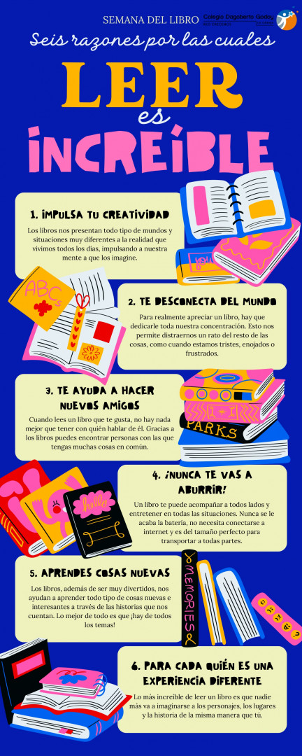 Este jueves 24 y viernes 25 de abril, el Colegio Teniente Dagoberto Godoy La Granja vivirá entretenidas actividades para celebrar el Día del Libro. ¡No te quedes fuera y motívate a participar! Conoce la programación en los siguientes afiches.