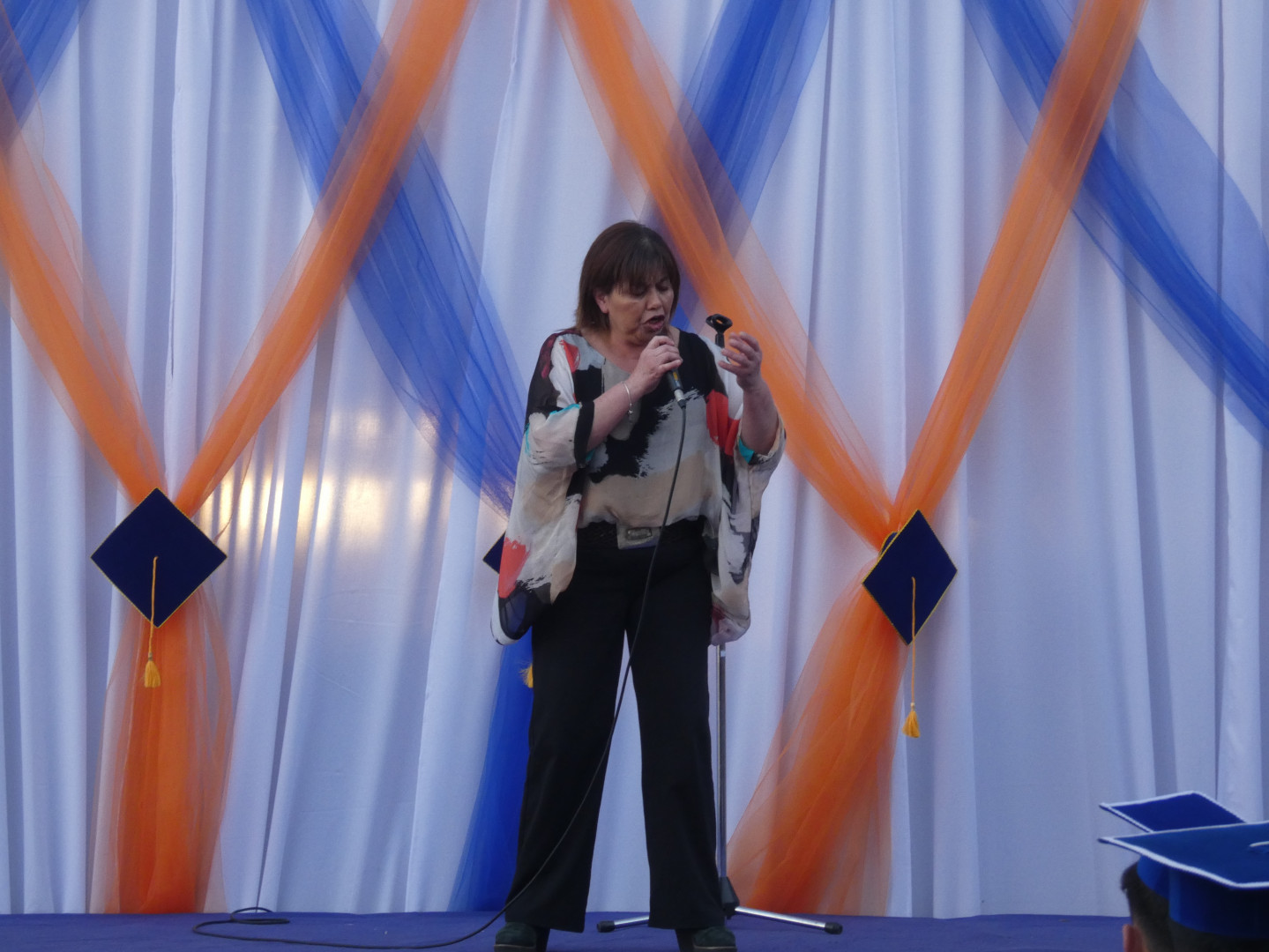 Invitamos al escenario a la profesora SUSAN PAILEMILLA para que les haga entrega DEL PREMIO A LA TRAYECTORIA a los siguientes estudiantes. El premio a la trayectoria se otorga a los estudiantes que cursaron los 12 años de escolaridad en el establecimiento.