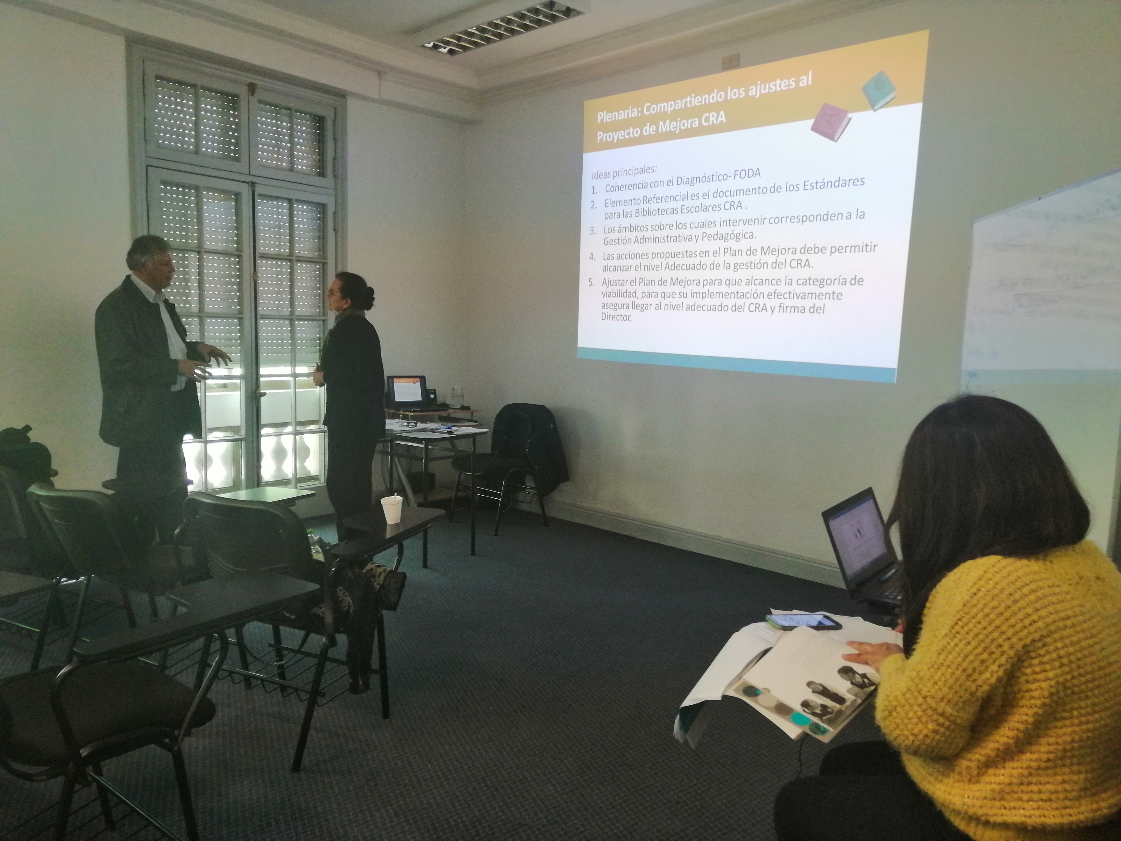 Los asistentes a la capacitación participaron en actividades de apropiación del programa de trabajo a desarrollarse en la segunda fase del plan de formación, en que los equipos serán apoyados por asesores que asistirán en 6 ocasiones a acompañar el trabajo realizado por los centros de recursos para el aprendizaje (CRA), con la finalidad de favorecer un servicio orientado al fomento de la lectura en toda la comunidad escolar.