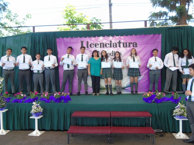 Con gran emoción, este viernes 15 de diciembre el Colegio Santiago La Florida celebró la Licenciatura de 8° básico A y B, en compañía de sus respectivos profesores jefes, Francisco Orellana y Patricia Vera. En la ocasión se hizo entrega de las licencias a las y los estudiantes de ambos cursos, junto con premiar a aquellos que destacaron en diversas áreas: Formación Valórica, Noelia Santander y Amaya Rodríguez; Esfuerzo, Gabriel Canto y Renato González; Mejor Compañero, Martín Mardones y Aarón Toro; Mejor Promedio, Alexandra Pinto y Catalina Valdés;