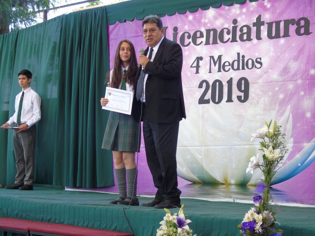 En presencia de sus apoderados/as, familiares, profesores/as y el equipo directivo del Colegio Santiago La Florida, las y los estudiantes de 4° medio 2019 se despidieron del establecimiento. En la ceremonia fueron destacados los y las estudiantes que cursaron toda su enseñanza en el colegio, además de aquellos/as que resaltaron por su rendimiento académico, valores, asistencia y participación en las actividades del colegio.