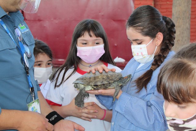 Las y los estudiantes de Kínder a 4º básico del Colegio Santiago La Florida disfrutaron de una mágica jornada este viernes 29 de octubre, con la visita de una granja educativa gestionada por la Dirección del Establecimiento y su Departamento de Convivencia Escolar. En la actividad los niños y niñas pudieron conocer, acariciar y aprender sobre diversos animales, tales como terneros, ponys, ovejas, cabras, conejos, pollos, patos y tortugas semiacuáticas.