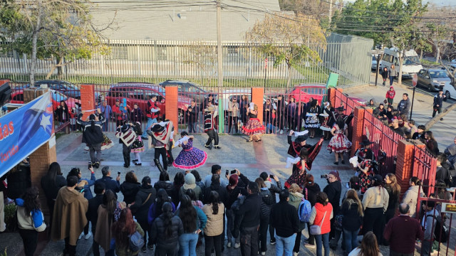 En marco de mes de la chilenidad, este miércoles 10 de septiembre el jardín infantil “Aurora de Chile” invitó al Colegio Santiago La Florida a realizar un esquinazo en sus dependencias. En la presentación se brindó un pie de cueca, compuesto por una fantasía de cueca, baile individual y una última cueca donde se invitó al público a participar.
