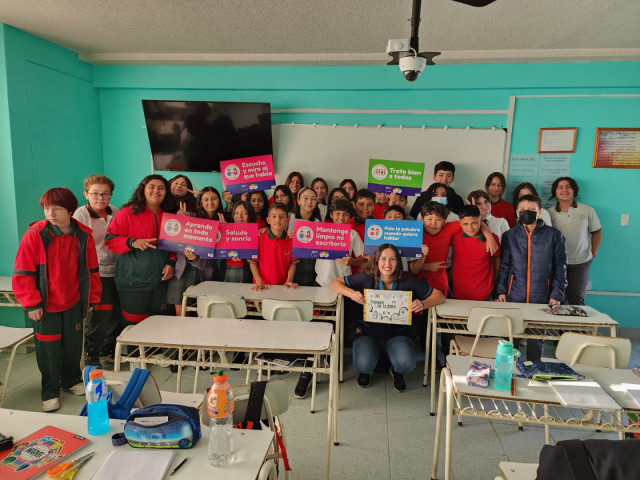 Este lunes 17 de julio, el Colegio Santiago La Florida inició el segundo semestre académico 2023. Para cumplir con las indicaciones del Ministerio de Educación, en este retorno se retomó el uso obligatorio de mascarillas en espacios cerrados, como dentro de las salas de clases.