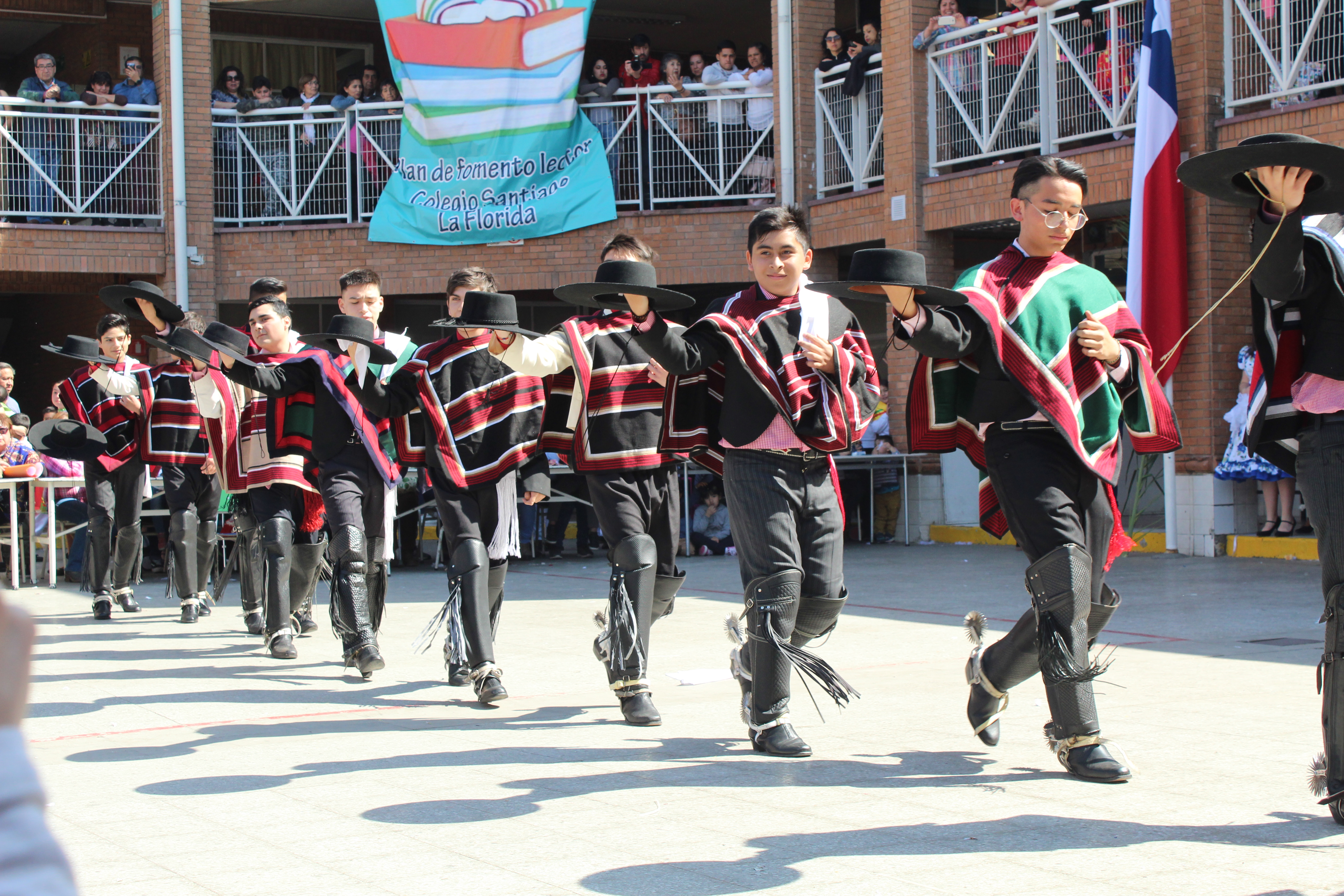 Con destacadas presentaciones de sus estudiantes y profesores, el Colegio Santiago La Florida celebró este viernes 13 de septiembre desde las 9:00 horas la "Fiesta de la Chilenidad 2019". En la ocasión todos los cursos de Enseñanza Básica y Media exhibieron una muestra de bailes típicos de las zonas norte, sur y centro de nuestro país.