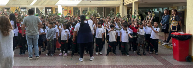 La primera de ellas fue la apertura de la semana, con la llegada del Burrito al establecimiento, recreando la entrada de Jesús a Jerusalén. Las y los estudiantes recibieron esta visita con ramos y cantando la canción “Hosanna eh- hosanna ah”, practicada en la asignatura de Religión.