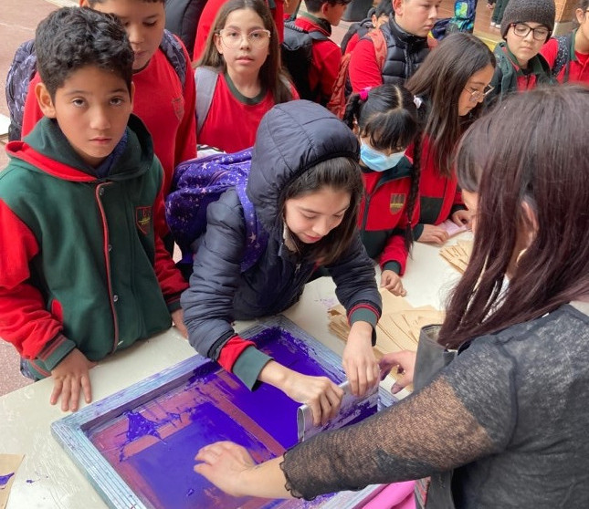 También, estuvo presente la banda del colegio desde el área de música y, por último, la visita de una tallerista de serigrafía, donde los y las estudiantes pudieron estampar sus poleras o dibujos, generando así una gran exposición colectiva.