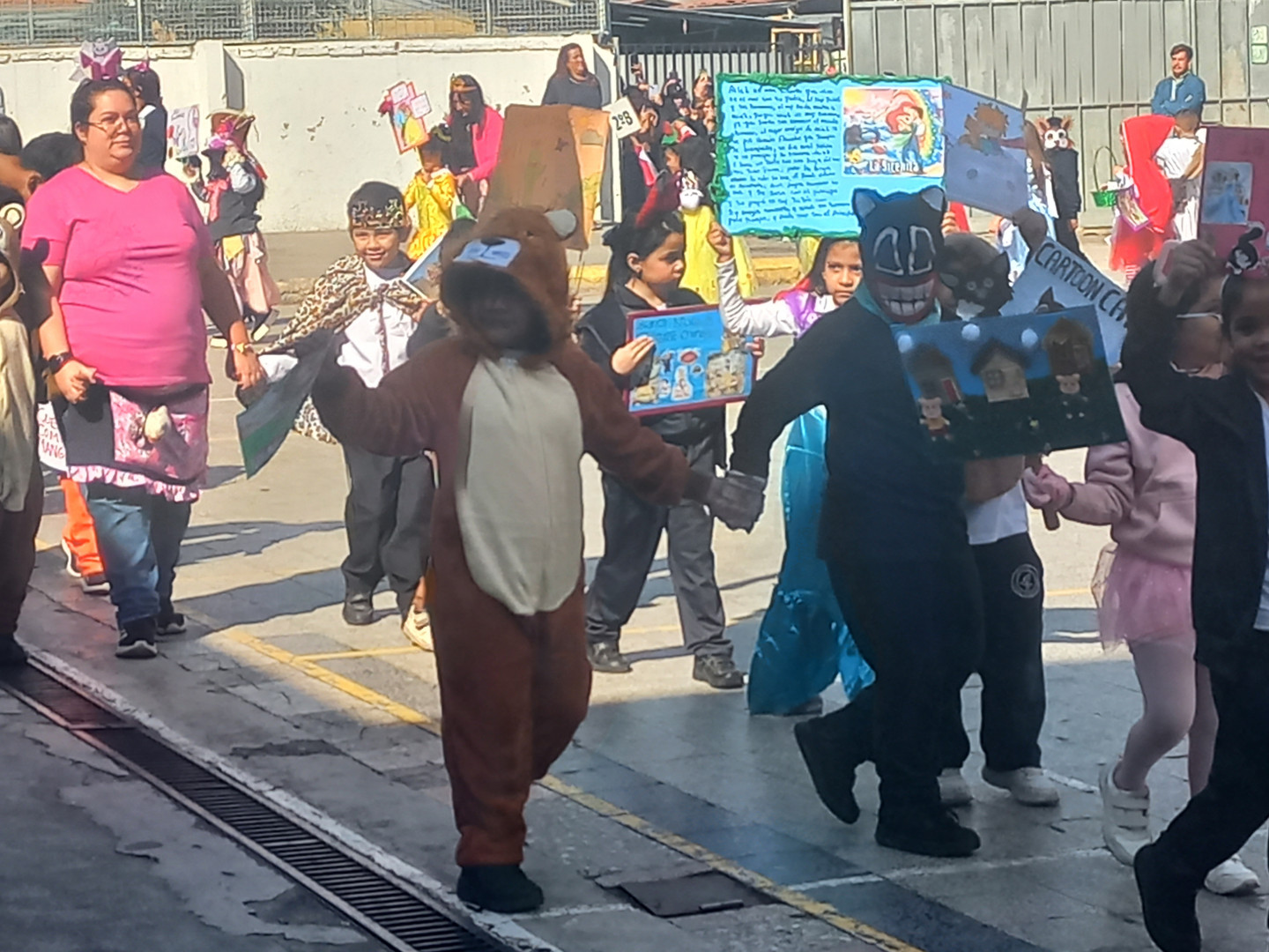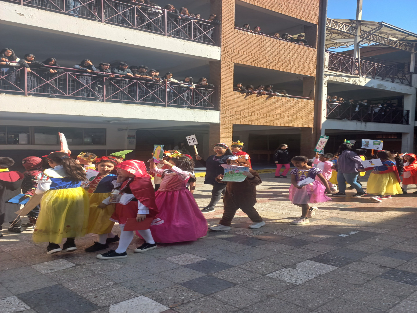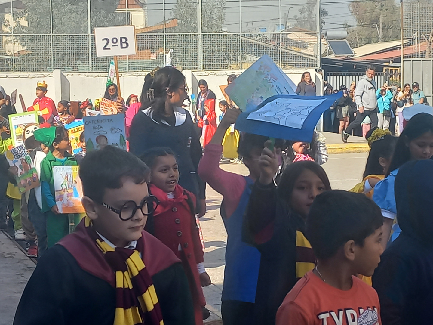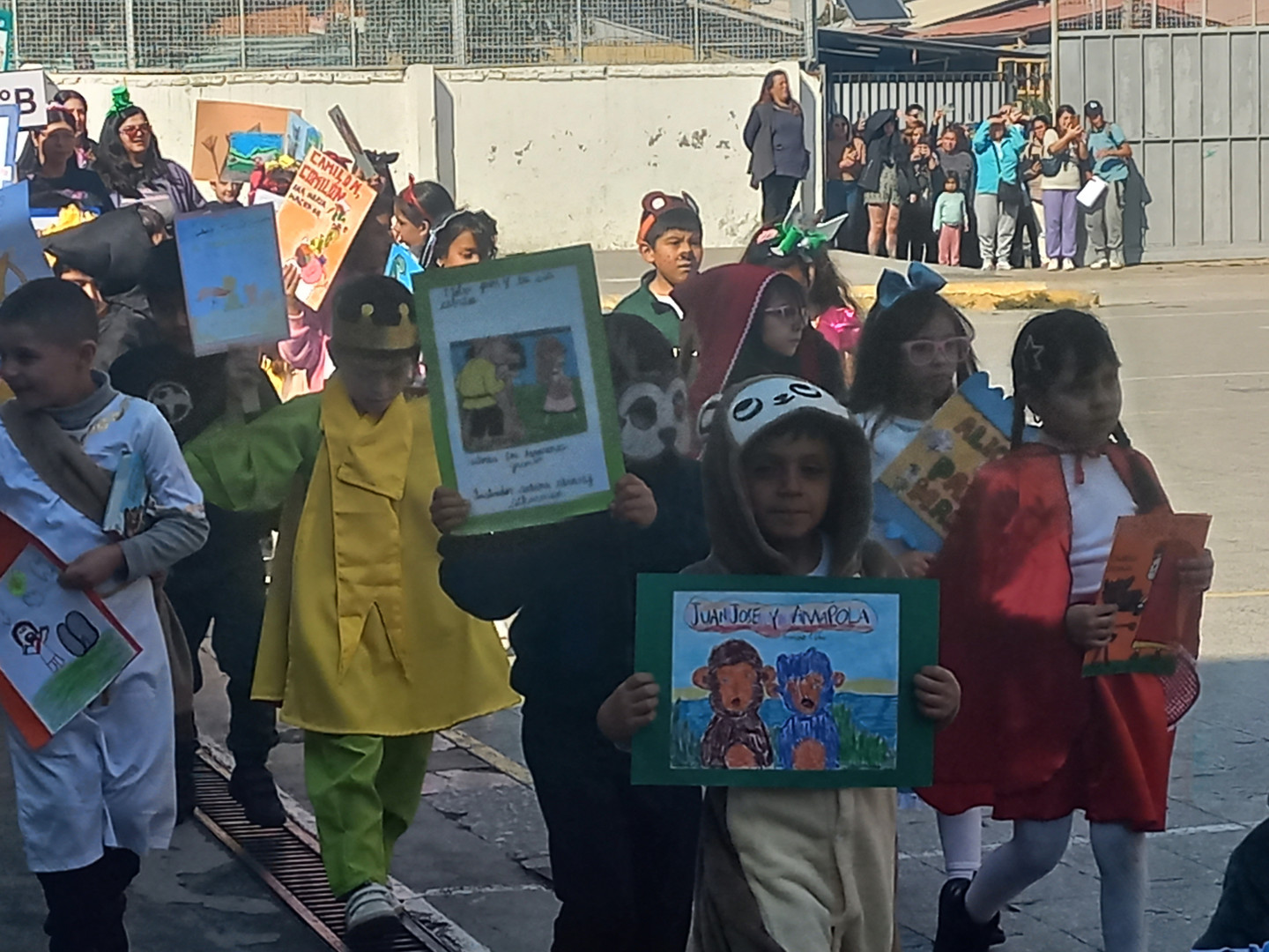 La jornada del 22 de abril comenzó con la difusión de una cápsula informativa virtual preparada por estudiantes de cuarto medio, dirigida a toda la comunidad escolar. Posteriormente, se realizó un desfile literario alrededor del colegio, en el que participaron estudiantes de primero y segundo básico, acompañados por alumnos de cuarto medio del