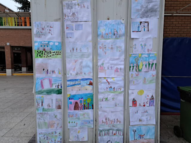 En el marco de la celebración del Día del Libro y del Derecho de autor en el Colegio Santiago de La Florida, cursos de educación básica y media realizaron intervenciones en salas, patios, escaleras y pasillos del colegio. Entre las intervenciones más destacadas estuvieron los “asaltos literarios” realizados por estudiantes de séptimo a cuarto medio dirigido a sus compañeros y compañeras de kínder y educación básica. También destacaron el diseño de puertas y escaleras literarias, la exposición de afiches y fotografías de autores/as, paneles literarios, intervenciones musicales a cargo de los y las estudiantes de cuarto medio y un árbol de grullas creado por los y las estudiantes de quinto básico.