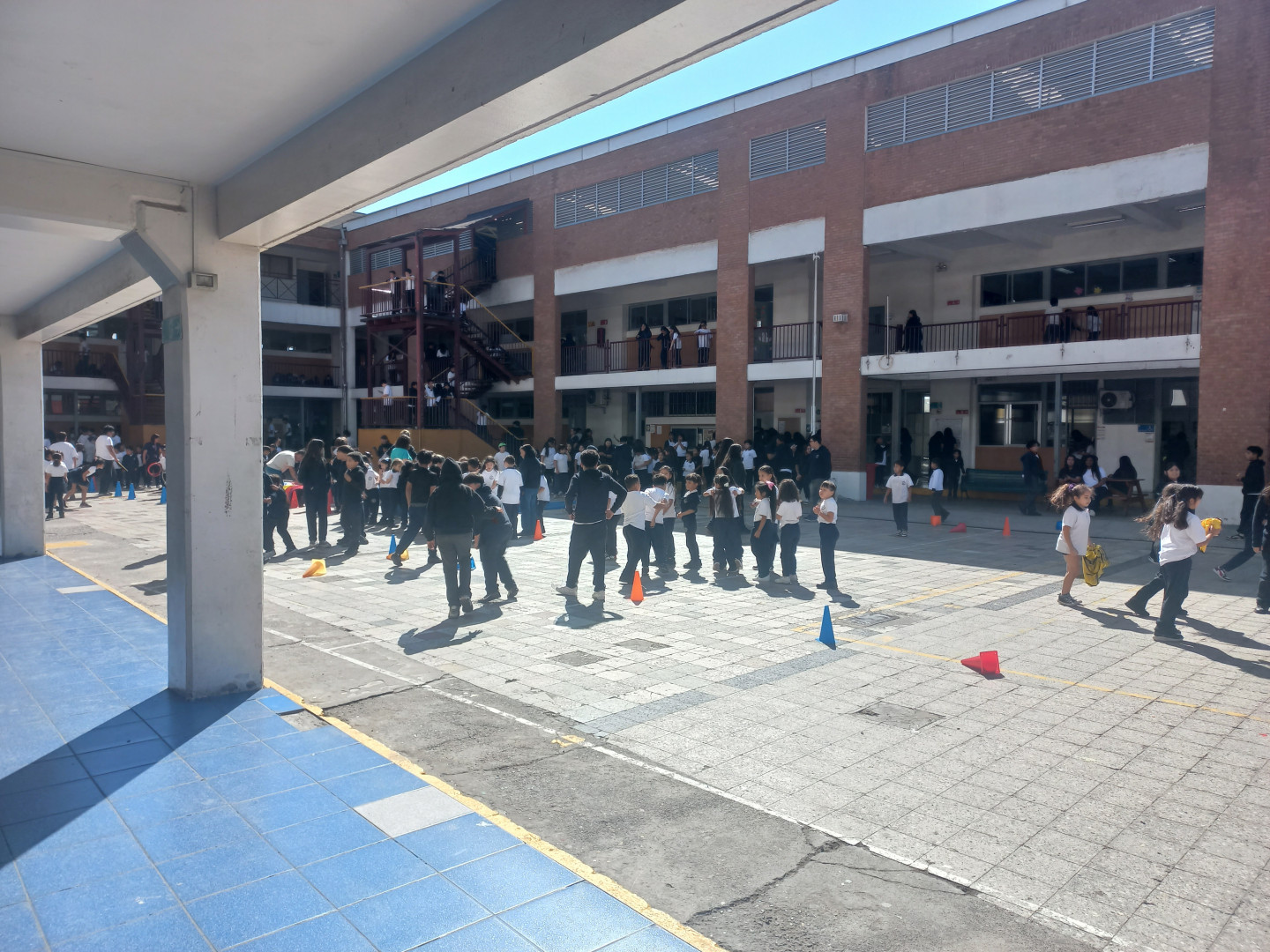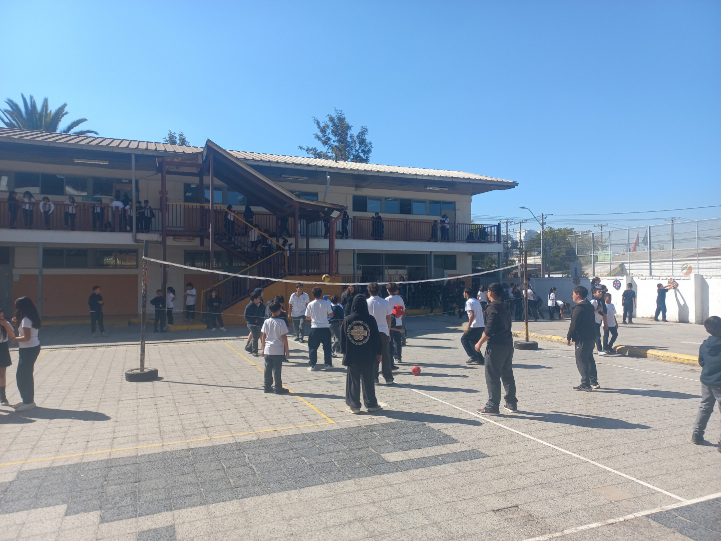 Desde las 9:30 horas, el patio central se transformó en un espacio lleno de energía y diversión para los cursos desde 4.º básico hasta IV medio, quienes participaron en entretenidas actividades como vóleibol gigante, quemadas y tiro al blanco. Paralelamente, en el patio aéreo, otros estudiantes disfrutaron de juegos que promovieron la concentración y el pensamiento lógico, tales como ajedrez y tenis de mesa.