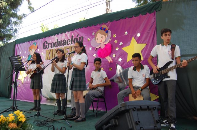 Los niños y niñas de Kínder A y B del Colegio Santiago La Florida vivieron su ceremonia de Licenciatura, acompañados por sus educadoras, Raquel Letelier y Claudia Garfias y sus asistentes de aula. En la ocasión, se reconoció a las y los estudiantes que destacaron como Mejor Compañero, Rendimiento Académico, Esfuerzo y Valores Institucionales. Además, se disfrutaron dos presentaciones musicales, protagonizadas por la estudiante de 7° básico, Daniela Miranda, y la profesora, Lissette González. En representación de las educadoras, la docente Raquel Letelier pronunció un emotivo discurso, y por parte de las y los estudiantes, lo brindó Michelle González.